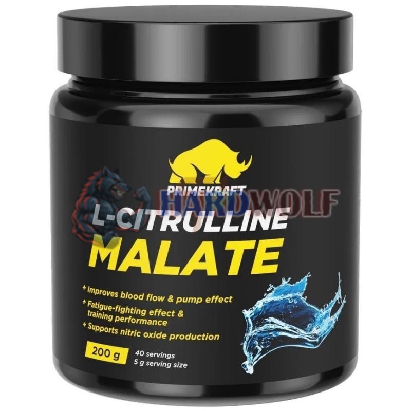 Пищевая добавка от бренда Прайм Крафт содержит аминокислоту цитруллин в форме L-цитруллина DL-малата 2:1 (с присоединением молекулы яблочной кислоты). Добавка представлена в форме порошка с нейтральным вкусом, без наполнителей и ароматизаторов, массой 200 гр.