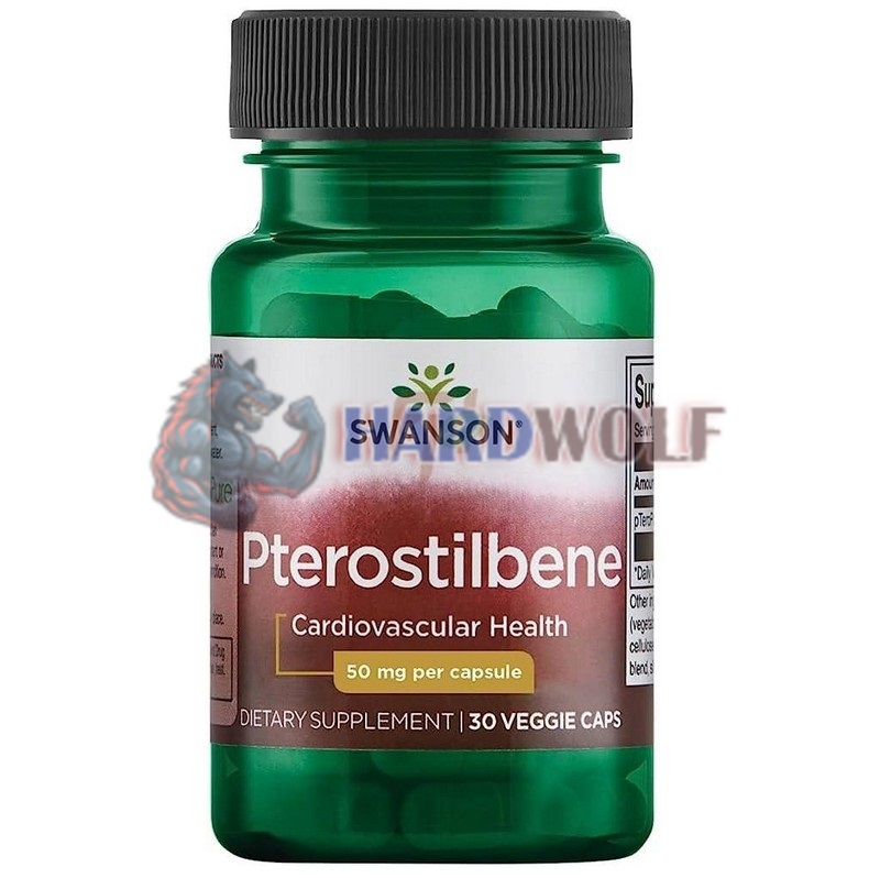 Пищевая добавка от американского бренда Свансон содержит натуральный птеростильбен в веганских капсулах, в дозировке 50 мг. Количество порций в упаковке: 30