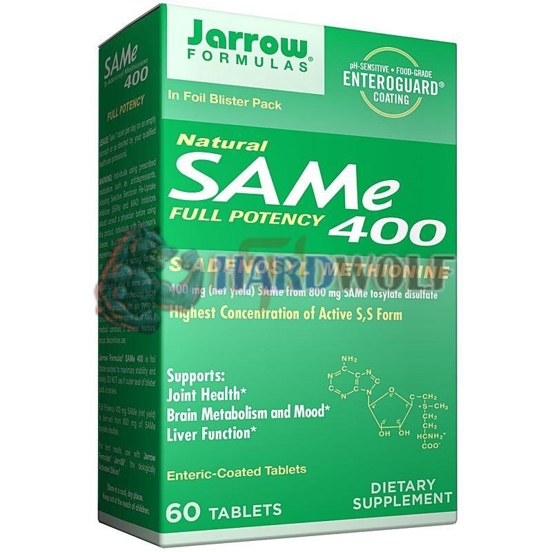В своей продукции компании Джерроу Формулас использует натуральное сырье премиального качества, имеющее наивысшую биологическую активность благодаря высокой концентрации S, S-формы. Добавка содержит 400 мг чистого вещества из 800 мгдисульфата тозилата SAM-е.